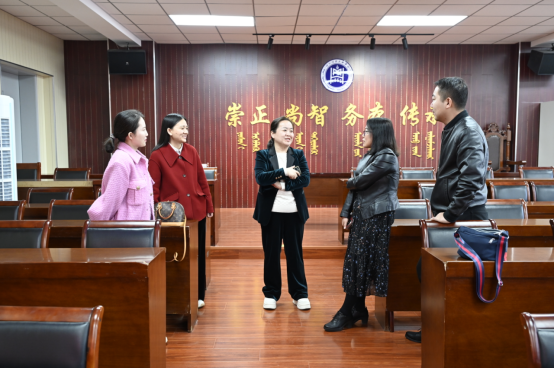 为强化法学教育质量,促进兄弟院校间的深度交流与合作,4月9日下午,内蒙古民族大学法学院副院长付淑娥一行4人赴我院开展考察学习活动。此次交流聚焦法学本科及研究生教育、专业建设、法学实验室构建以及涉外法治人才培养等关键议题,旨在相互借鉴成功经验,加强合作交流,共同探索法学教育的创新发展路径。