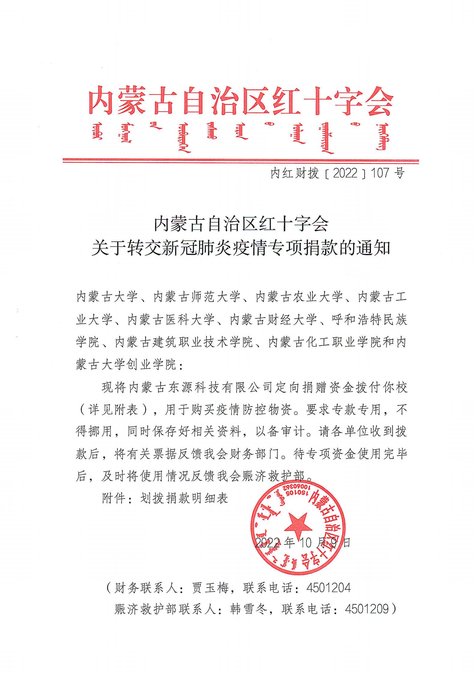 10月14日,内蒙古东源科技有限公司通过红十字会定向捐赠资金20万,用于购买疫情防控物资,助力365上市公司官网打赢疫情防控攻坚战。