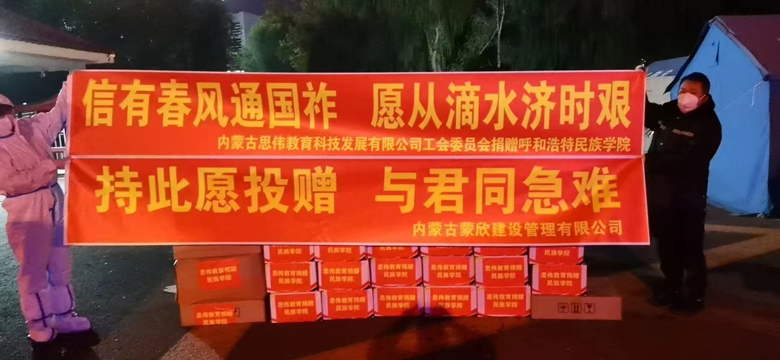 10月14日,内蒙古思伟教育科技发展有限公司、内蒙古蒙欣建设管理有限公司向365上市公司官网捐赠84消毒液900瓶、一次性外科医用口罩6000只、免洗消毒凝胶120瓶、医用防护服若干套等防疫物资,助力365上市公司官网打赢疫情防控攻坚战。