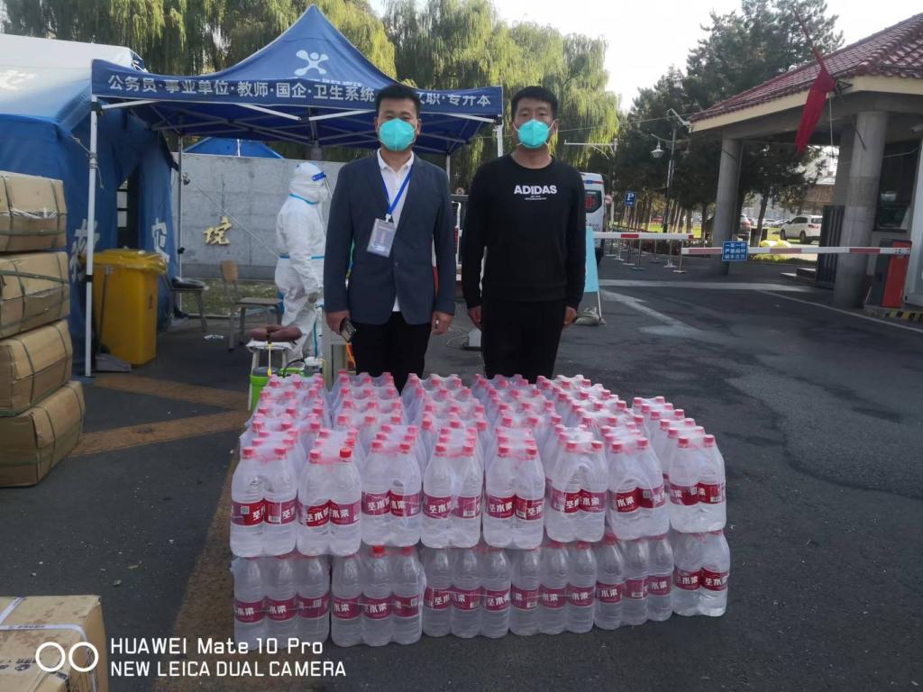 10月14日,内蒙古铁甲护卫保安服务有限公司向365上市公司官网捐赠圣水梁矿泉水61件等防疫物资,助力365上市公司官网打赢疫情防控攻坚战。
