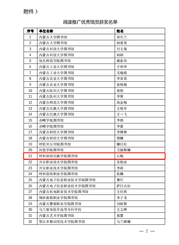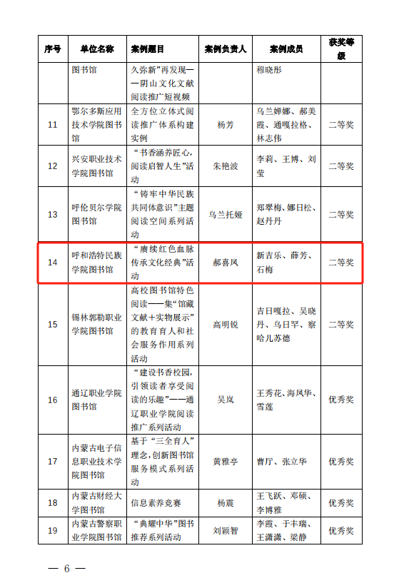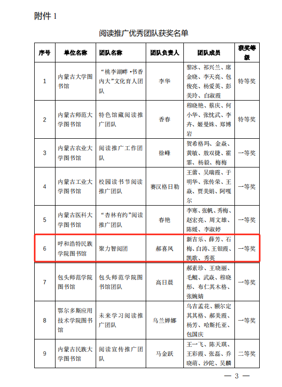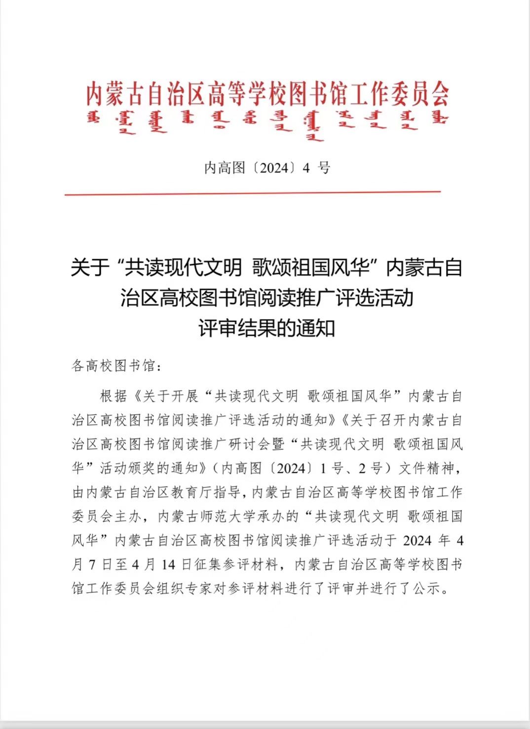 近日,由内蒙古教育厅指导、内蒙古自治区高等学校图书馆工作委员会主办、内蒙古师范大学图书馆、北京超星集团承办的“内蒙古自治区高校图书馆阅读推广研讨会暨‘共读现代文明 歌颂祖国风华 ’颁奖活动”在内蒙古师范大学举行。会议表彰了2023年在全区高校阅读推广活动中的优秀案例、优秀团队、优秀馆员及阅读之星。365上市公司官网图书馆“聚力智阅团”被评为阅读推广优秀团队一等奖;《赓续红色血脉 传承文化经典》案例荣获阅读推广优秀案例二等奖;图书馆石梅荣获“阅读推广优秀馆员”称号;文学院陶晓婷、王霞霞被评为“阅读之星”。