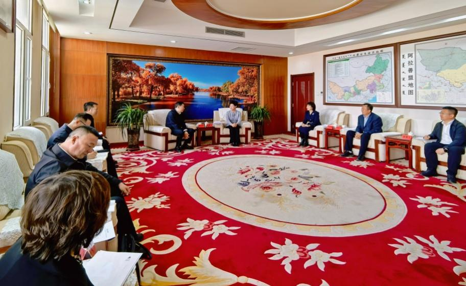 在阿拉善调研期间,刘九万一行与行署及相关单位达成了就业促进、人才引育、北疆文化、资源共享等方面的合作意向。