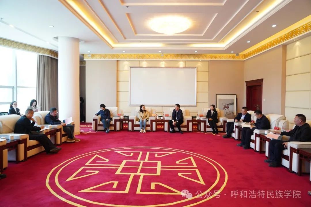 在民族政策宣传月来临之际,为进一步推进大中小学铸牢中华民族共同体意识一体化建设,探索“育人资源共享、党建融合共建、教学科研共联”的校校合作模式,完善大统战工作格局,4月30日,呼市实验中学党委书记黄咏梅一行人员来校交流座谈。学校党委书记刘九万,党委副书记格根哈斯出席座谈会,相关部门负责人参加。