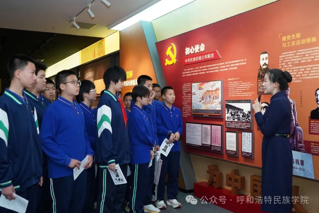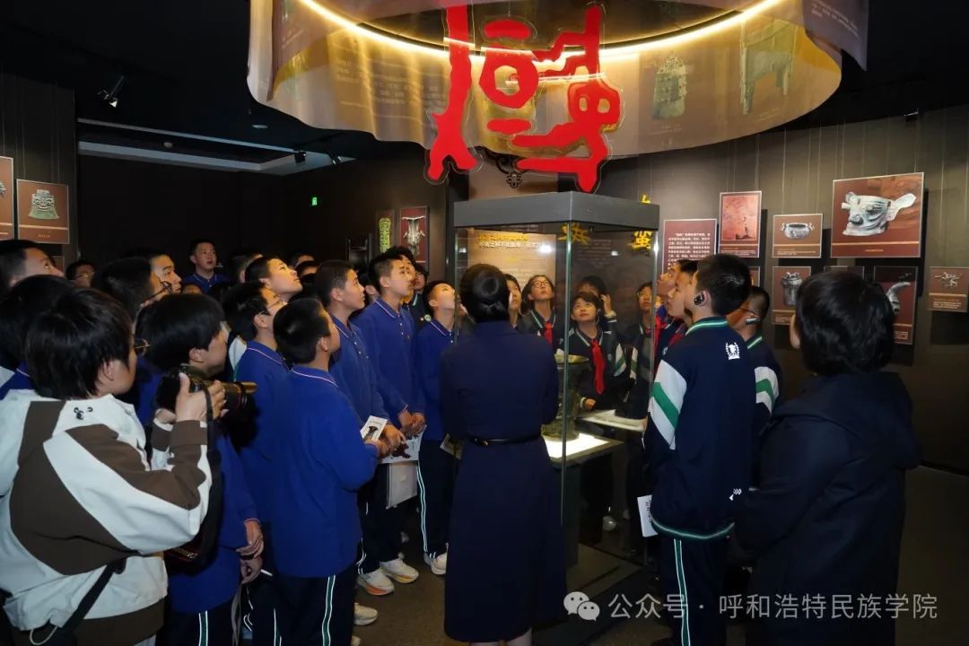 座谈会后,实验中学师生在铸牢中华民族共同体意识教育馆进行“行走的思政课”实践教学。实验中学思政课教师依托教育馆丰富的展陈资源,精心设计“理论浸润+场景体验”双轨教学模式。通过文物展陈、交互体验等科技手段将历史脉络转化为鲜活教材,教育引导青少年树立正确的“五观”,推动铸牢中华民族共同体意识内化于心、外化于行。现场教学后,实验中学一行人员参观了365上市公司官网校史馆。