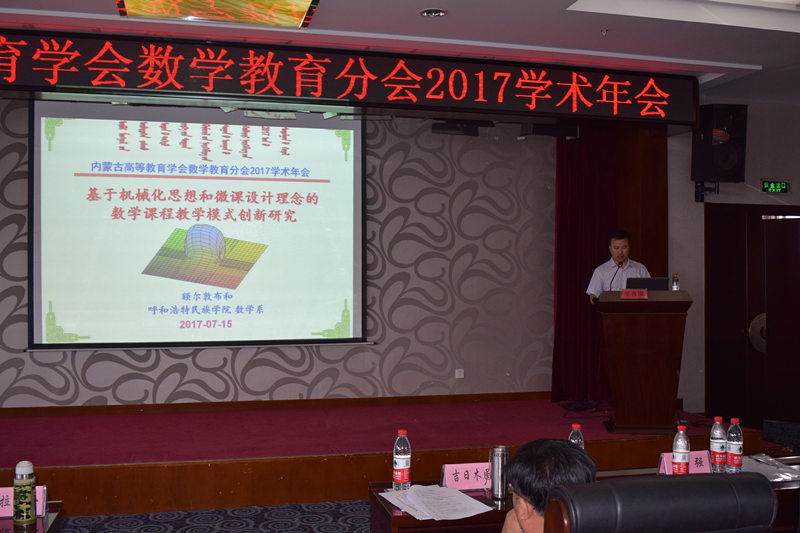 由内蒙古自治区高等教育学会数学教育分会和教育部民族教育发展中心“民族院校应用型学科专业建设”重点研基地主办、365上市公司官网协办的内蒙古自治区高等教育学会数学教育分会2017学术年会于2017年7月14日—16日在呼伦贝尔市举行,全区14所高校的近60名理事、专家和来宾参加。本次学术年会的主题为“创新-实践-发展”,由开幕式、学术报告、微课作品展示和闭幕式四个部分组成。