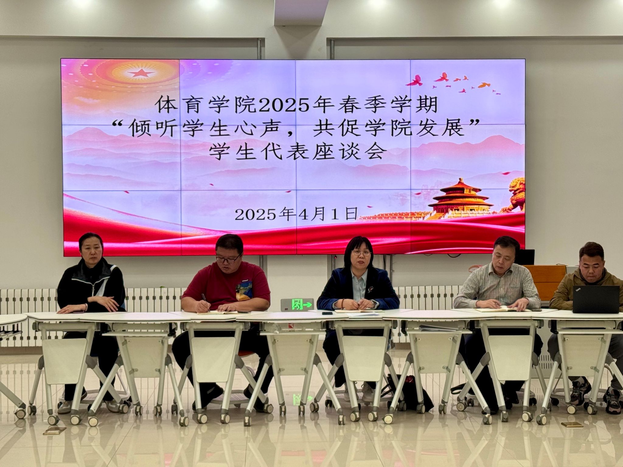 4月1日晚,体育学院于创业楼一楼教室召开2025年春季学期“倾听学生心声,共促学院发展”学生代表座谈会。学院领导班子成员、各年级辅导员、各专业学生代表以及各训练队队员代表齐聚一堂,共商学院发展与学生成长事宜。本次座谈会由学院党总支书记萨日胡主持,搭建起学院与学生沟通的桥梁。