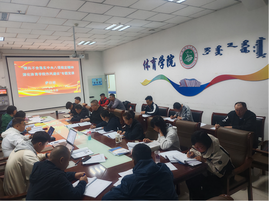 为深入贯彻落实全面从严治党要求,强化党员干部纪律意识,5月8日下午,体育学院党总支在体育馆三楼会议室召开中央八项规定精神学习教育专题党课及警示教育会。学院全体中心组成员、全体党员参会,会议由党总支书记萨日胡主持。